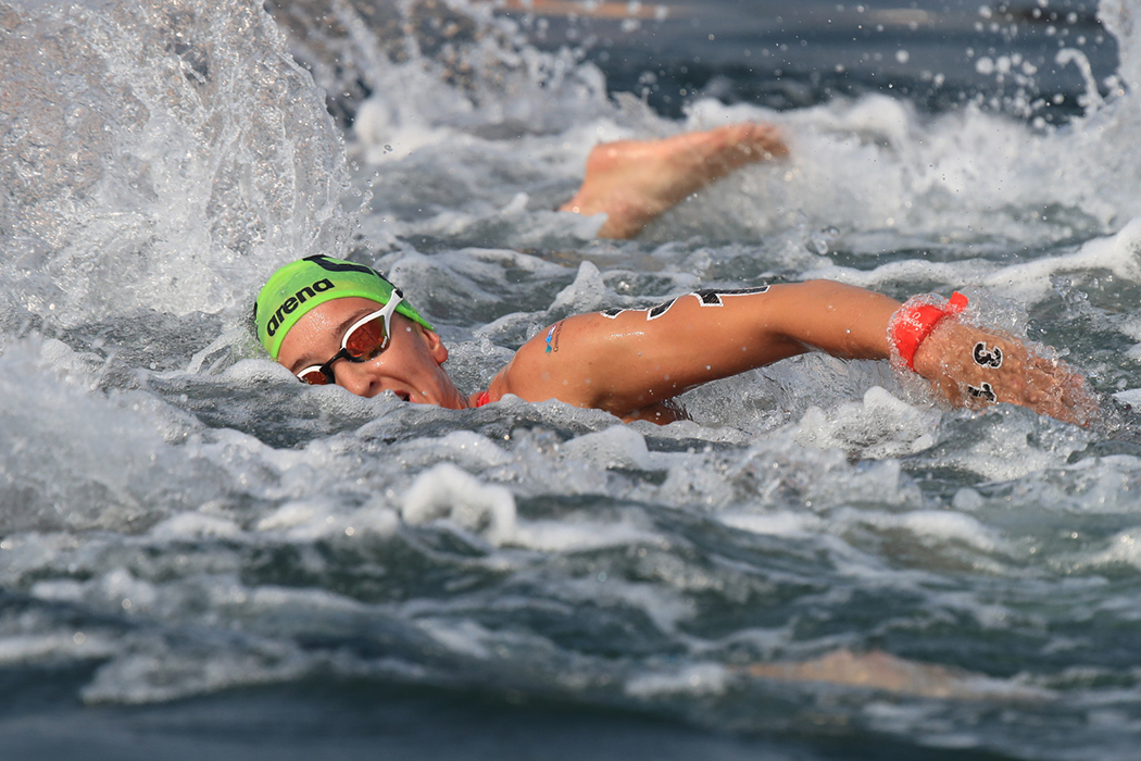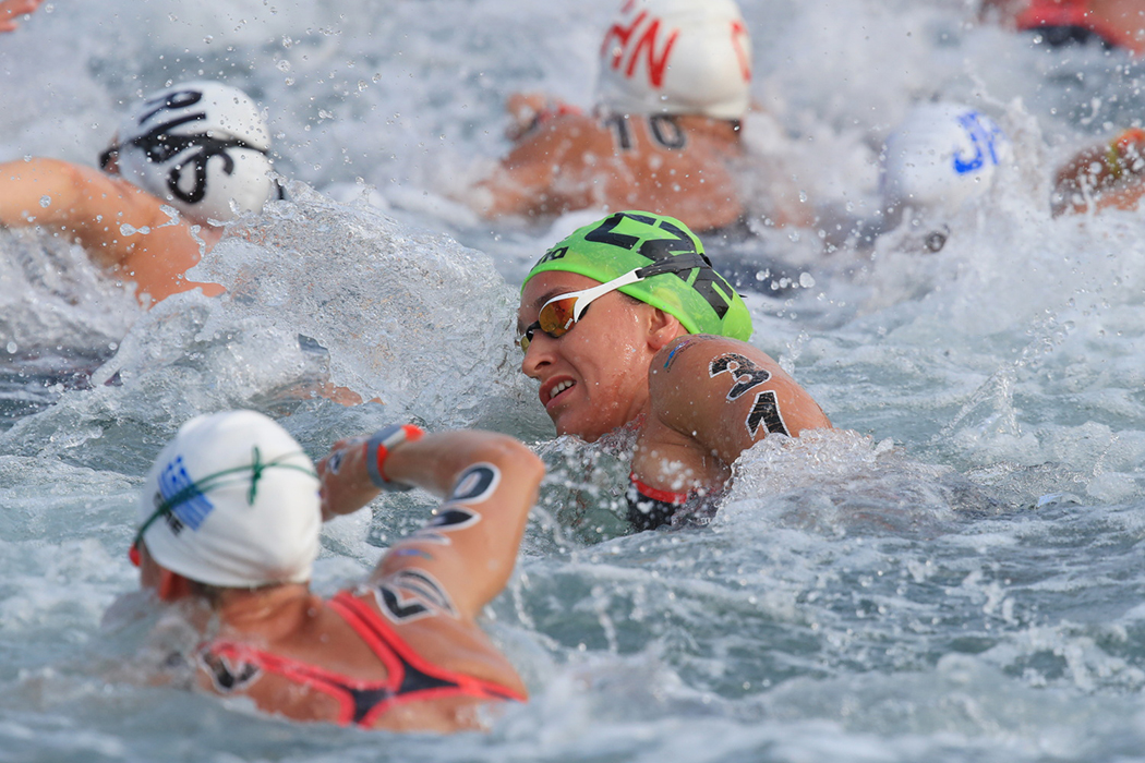 Důležitost závodu se ukázala i ve vodě, kde byl k vidění velmi taktický začátek. Žádná ze závodnic nechtěla zbytečně čerpat síly, které by ji pak ve finiši mohly scházet. Až do poloviny závodu plaval hlavní balík čtyřiceti závodnic pohromadě a v něm také obě Češky. Tempo se pak začalo rychle stupňovat. Z balíku nejprve odpadla Lenka Štěrbová, následně i Alena Benešová a k vidění byl až neuvěřitelný závěr zhruba patnácti závodnic. O kvalifikaci na Olympijské hry rozhodovaly desetiny sekund a některé dohmaty museli přezkoumávat cíloví rozhodčí ve foto finiši. Mezi první a třináctou závodnicí byl nakonec rozdíl pouhých 4,8 sekundy.